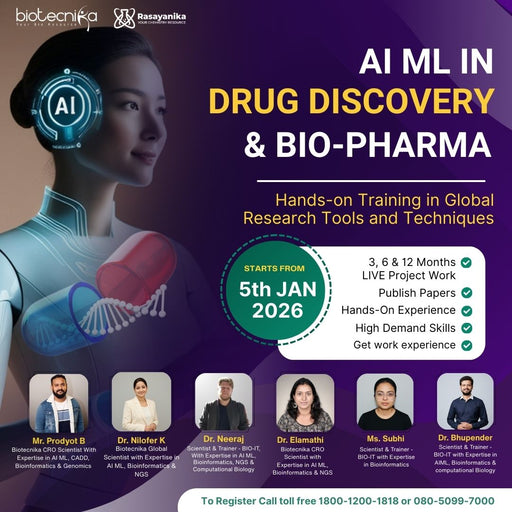 AI/ML in Drug Discovery & Biopharma – Hands-on Training Program With 3, 6 & 12 Months LIVE Project Work WORK IN PROJECTS | PUBLISH PAPERS...