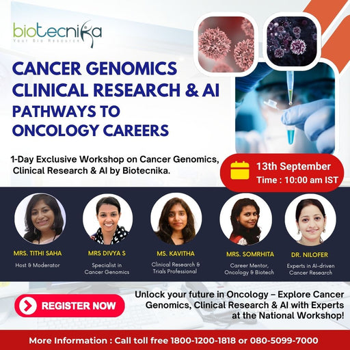 BioTecNika StoreRegistrations Open For National Workshop on Cancer Genomics, Clinical Research & AI Pathways to Oncology Careers About the Workshop Cancer rese...