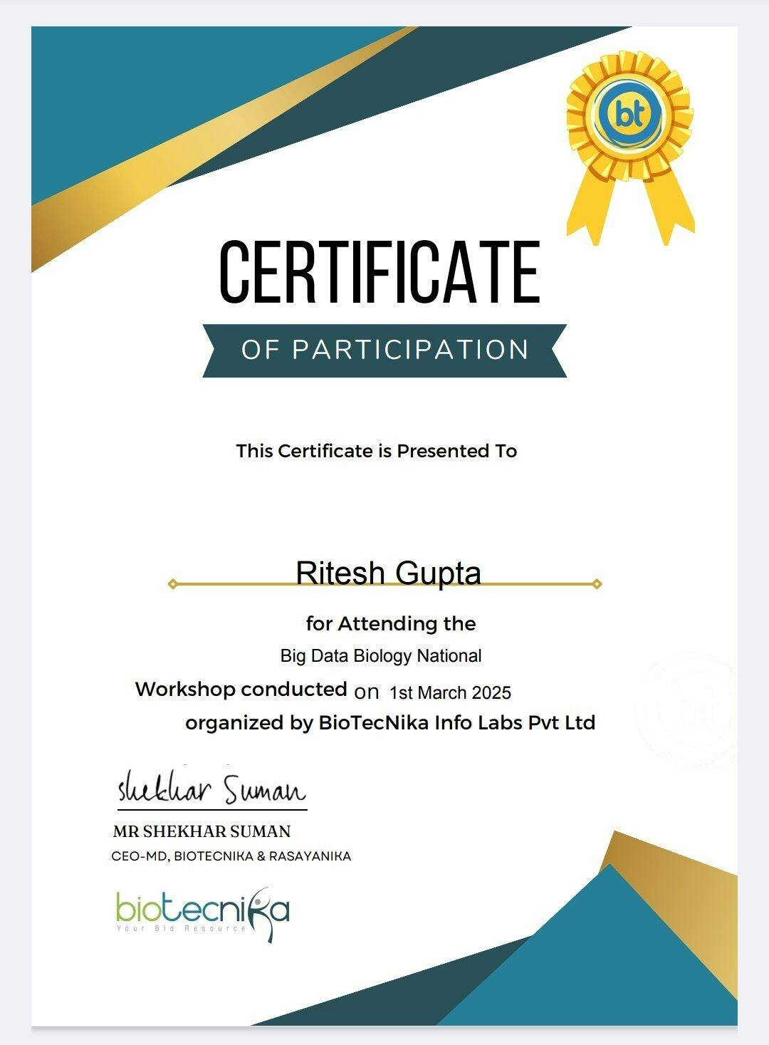 I attended a power-packed workshop by Biotecnika on Big Data in Biology, exploring how multi-omics, AI, and advanced analytics are reshaping research and healthcare. From genomics-driven precision medicine to modern tools like Python, Hadoop, and Spark, each session offered clear insights into how data is transforming diagnostics, drug discovery, and personalized treatment. A short but truly impactful learning experience!